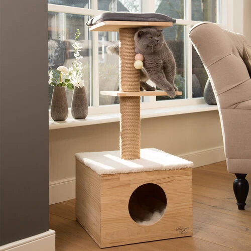 Designed by Lotte Kamina Kratzmöbel mit schönen weichen Plateaus, einem Spielpodest und einem Kratzbaum. Ein wahres Luxusparadies für Ihre Katze.