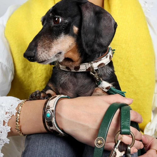Seien Sie auf der Straße der Hingucker, mit der wunderschönen Ivy-Leine von Dog With a Mission. Diese schöne Hundeleine aus grünem, geschmeidigem Leder und Messingdetails ist ein echter Blickfang. Außerdem hat der Griff einen schönen Tigerdruck und ist aus Ziegenhaar gefertigt. Die Hundeleine lässt sich perfekt mit: DWAM Halsband Ivy kombinieren. Mit einem Lederpflegemittel gepflegt, bleibt die Leine lange schön.