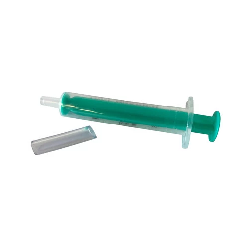 - Füllen Sie die Feindosierspritze auf 2,5 ml, indem Sie die Paste aus der Spritze herausdrücken.