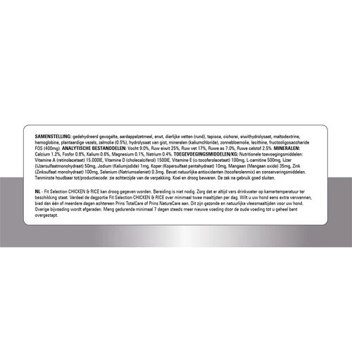 Fit Selection Huhn & Reis ist ein knuspriges Hundefutter für ausgewachsene und mittelgroße Hunde. Dieses Futter von Prins regt Ihren Hund zum guten Kauen an. Außerdem trägt es zu einer guten Verdauung und einer ausgewogenen Darmflora bei. Sorgfältig ausgewählte Zutaten wie Huhn und Reis sorgen für ein wahres Geschmackserlebnis, selbst für die wählerischsten Hunde.
