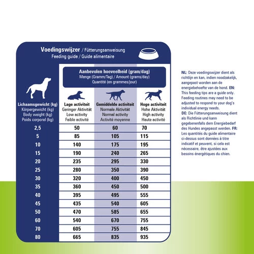 Die empfohlene Dauer der Anwendung beträgt 3 bis 8 Wochen. Wenn die Unverträglichkeitssymptome verschwinden, können Sie Ihrem Hund dieses Futter ohne Einschränkungen füttern. Bei der Umstellung von einem Brockenfutter auf ein gepresstes Futter raten wir, sofort auf das neue Futter umzusteigen.